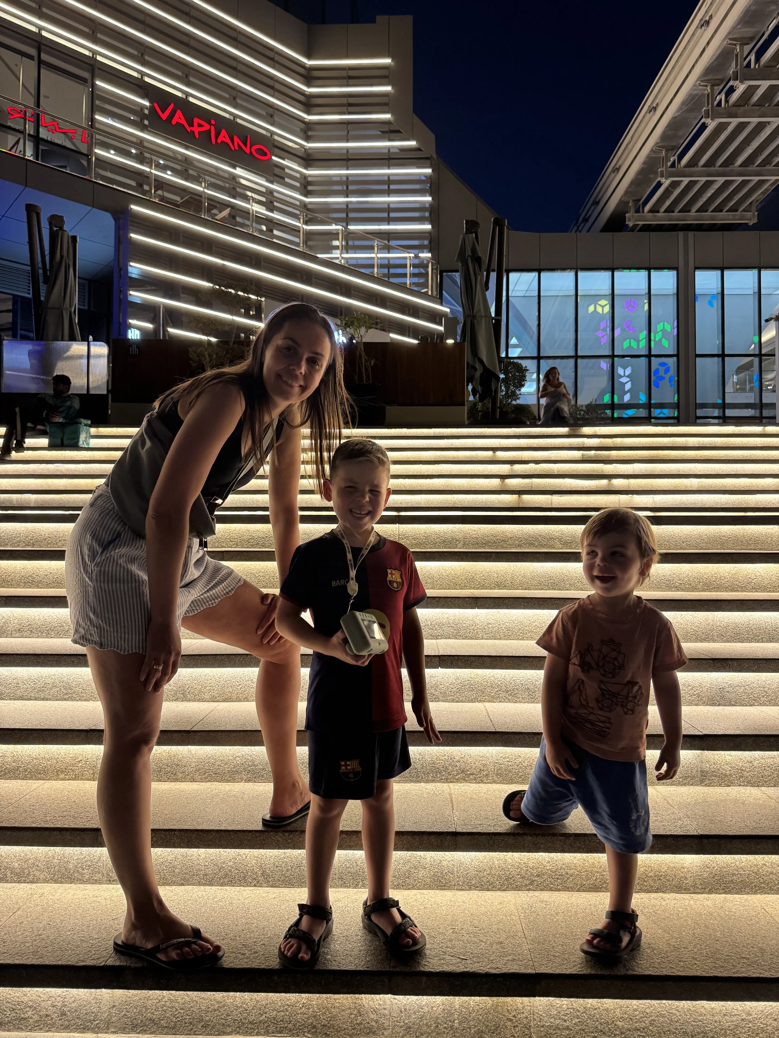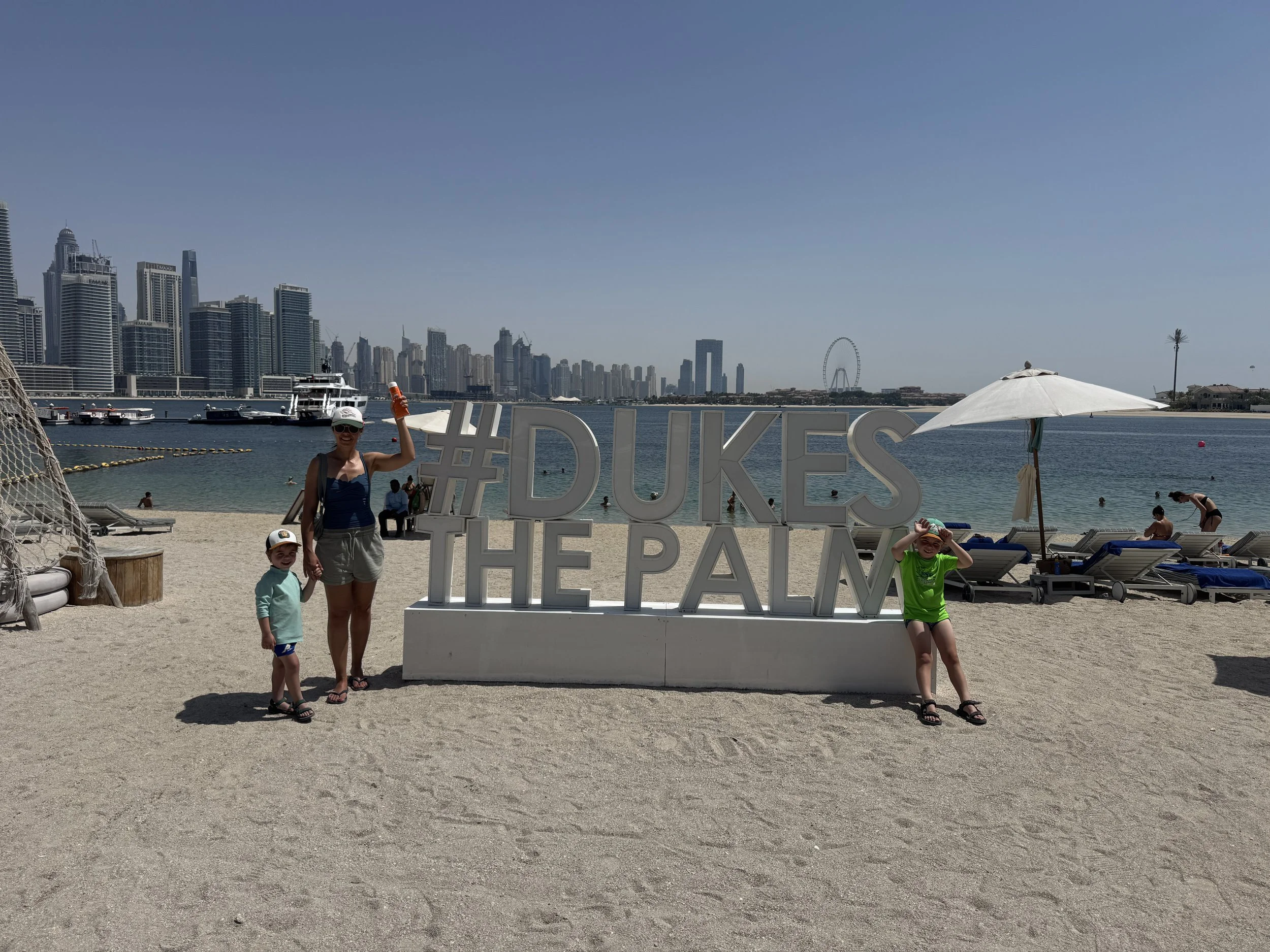 We hebben een prachtig hotel, voorzien van alle luxe met privestrand en 2 zwembaden. Dit was ook onze planning voor vandaag: bekomen, relaxen en een zwemmeke doen. Het is hier ook echt warm, Kim omschreef het alsof ze heel de tijd met een hete haardroger in uw gezicht blazen. Onze taxichauffeur omschreef het als “Dubai is barbecue” (zeker in augustus als wij er ook zijn - oh jee!). Tom vindt het nog wel meevallen, de lucht is droog, er staat een windje en de zwembaden zijn heerlijk. Zo is er een “Lazy river” waarin je wat kan dobberen met luchtmatrassen - dit vinden de jongens natuurlijk geweldig!