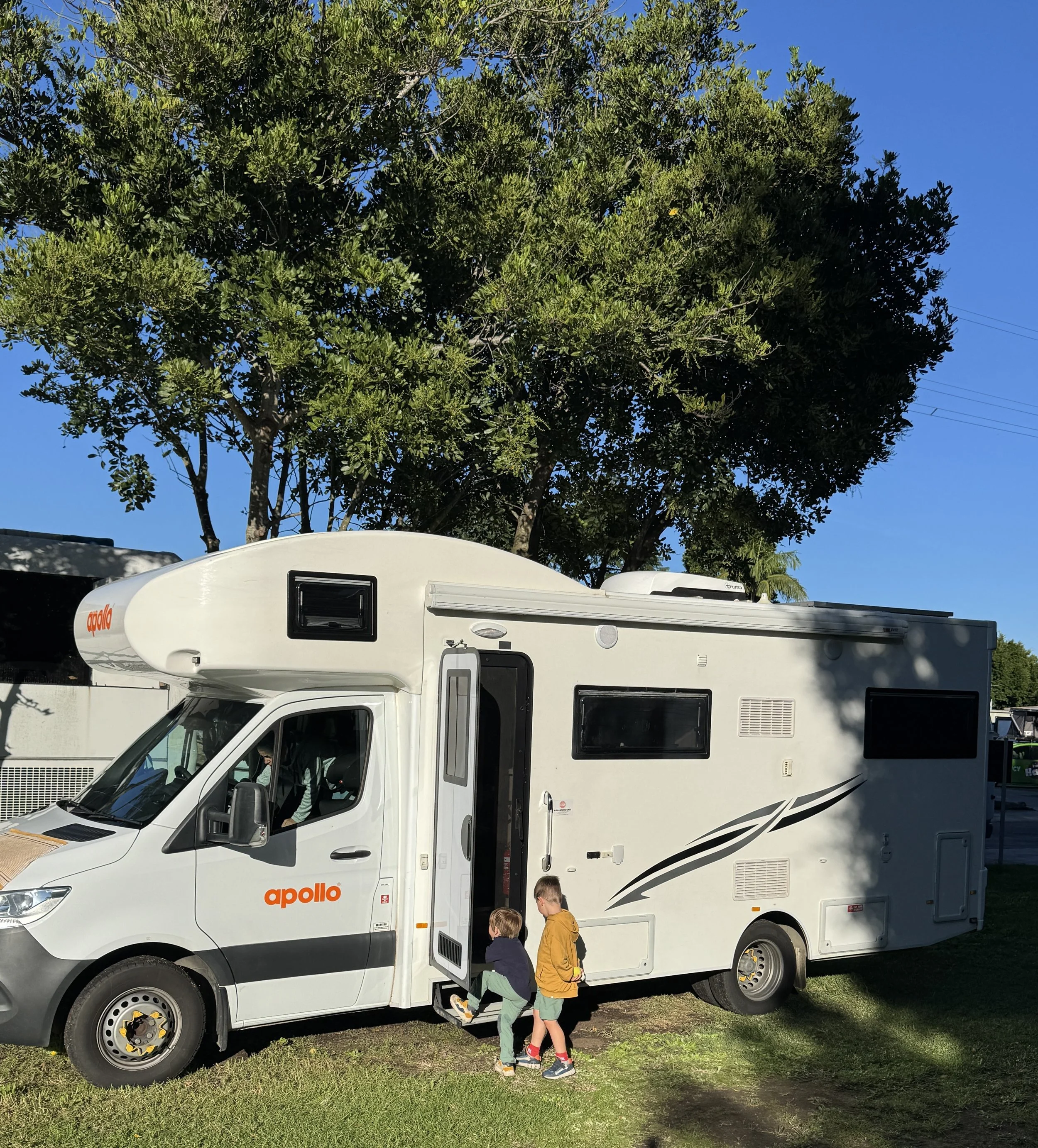 Een taxi brengt ons vlot tot bij de verhuurmaatschappij en we krijgen een camper toegewezen. Tot onze verbazing is dit niet degene die we geboekt hadden, en na een kleine controle zijn we niet tevreden: schimmelvlekken, keukenpapier tussen de ramen doen lekken vermoeden, en douche en toilet niet gescheiden (terwijl we dit net geboekt hadden). Dit is niet wat we verwacht hadden, en ook niet wat we gereserveerd hadden. De man aan de balie laat zijn verzuchtingen duidelijk blijken en geeft aan dat dit hetzelfde model is enkel een andere merknaam. Na aandringen blijkt dat het model dat we hebben geboekt toch in de garage staat en ze gaan de juiste camper voor ons halen en klaarmaken. Toch wel heel vreemd allemaal - waarom stellen ze deze in eerste instantie niet voor?