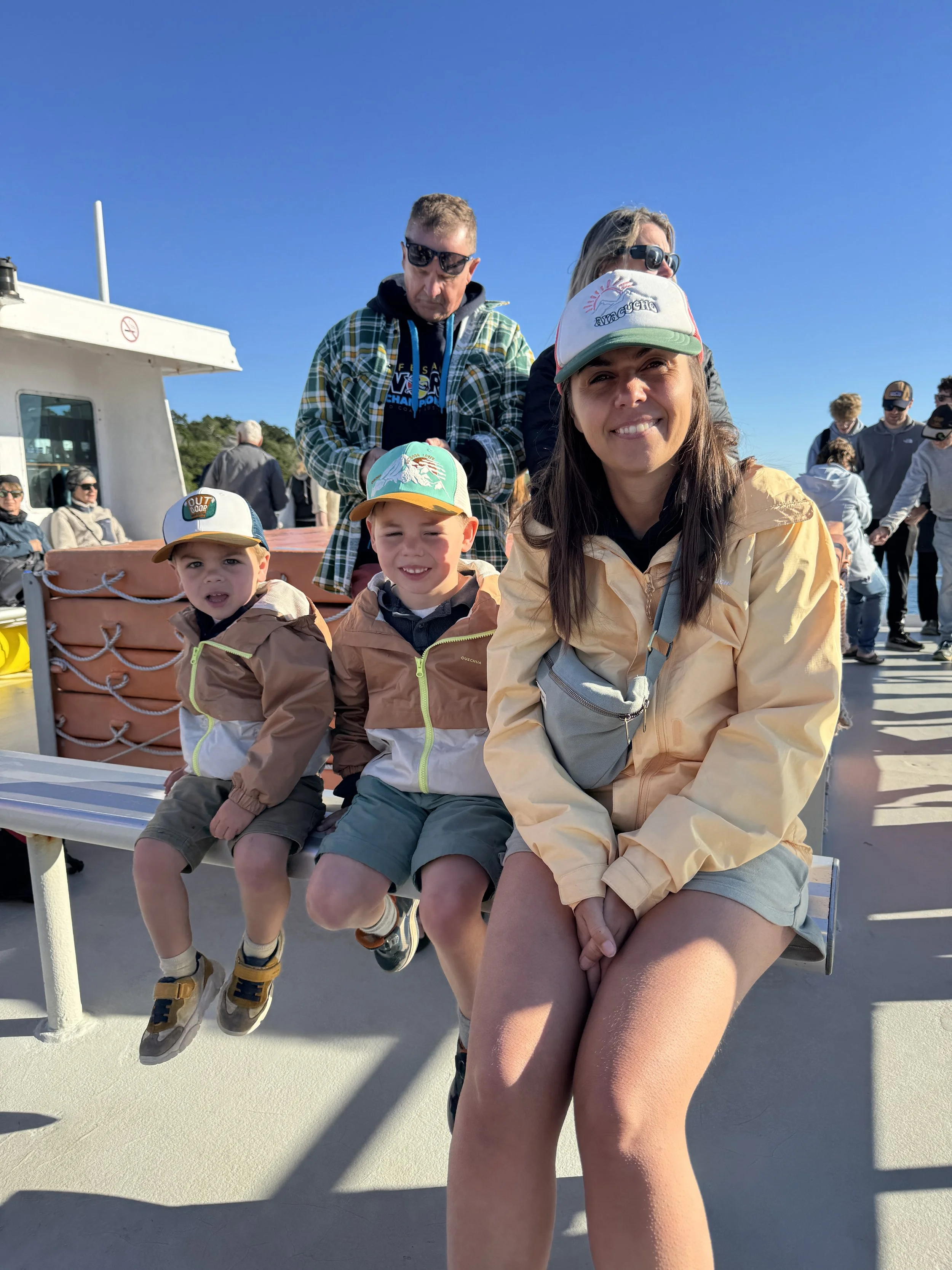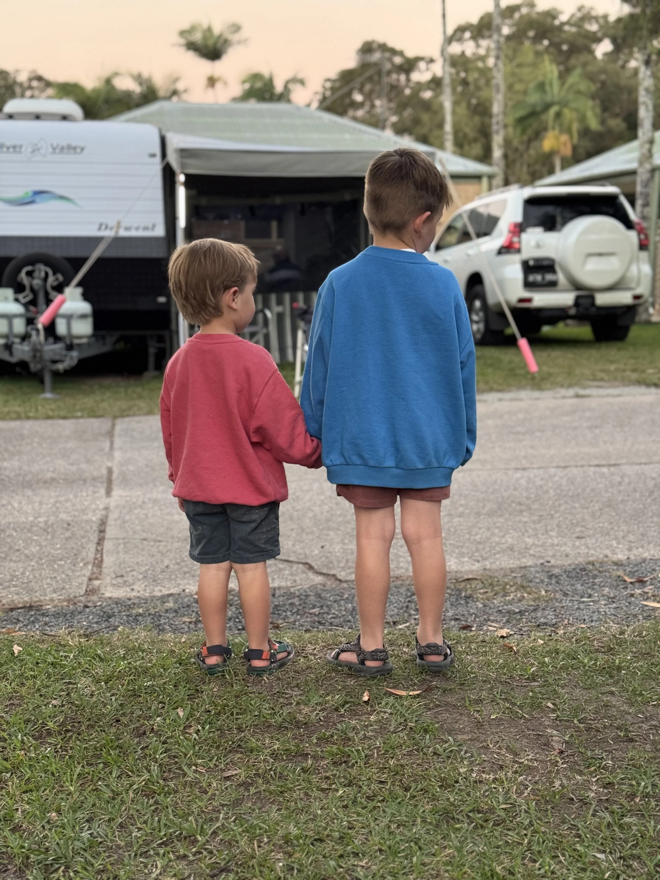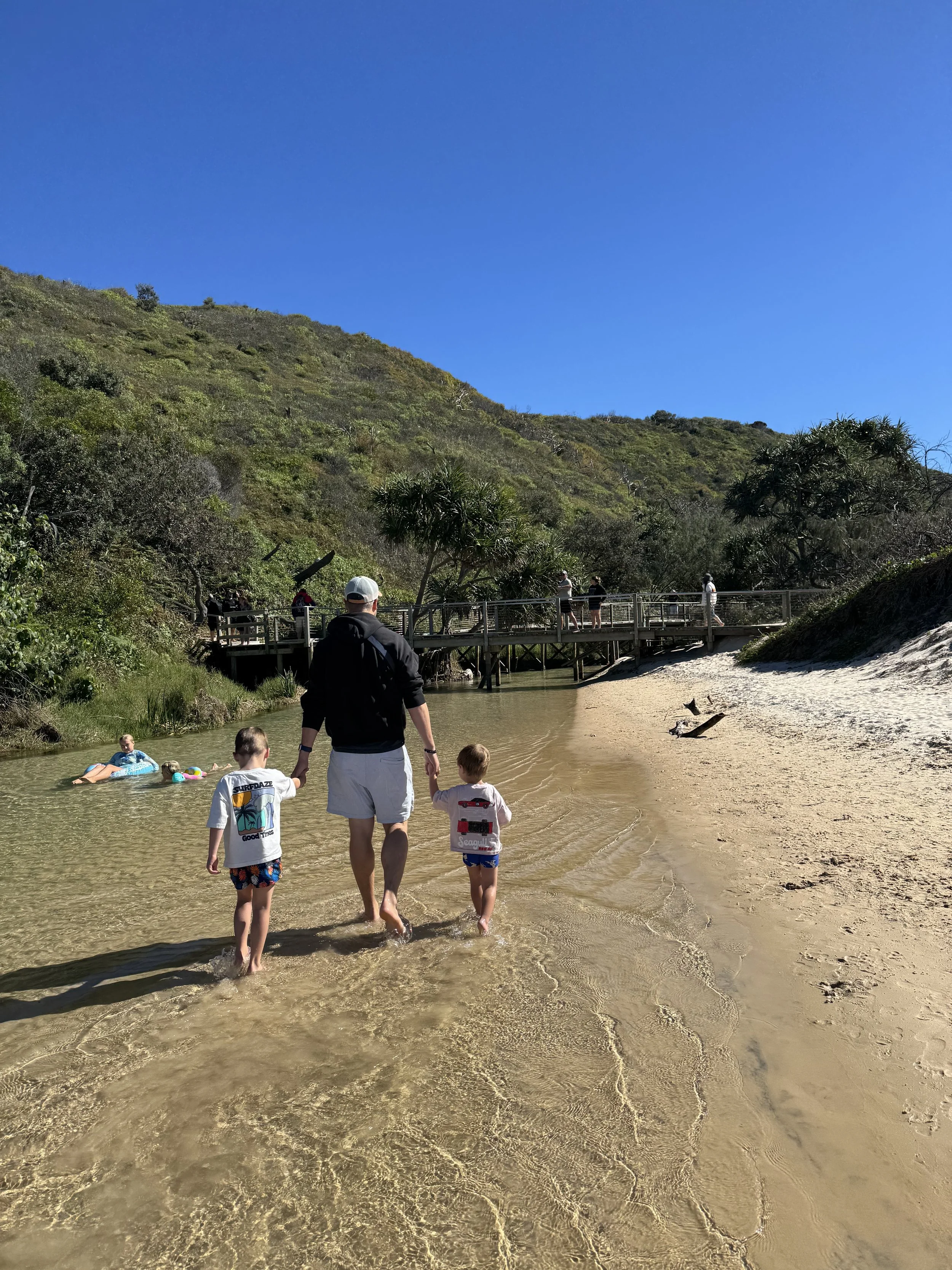 We komen aan in Noosa. We hebben een camping net buiten het centrum. Het is zaterdag, en zoals op vele campings spelen ze hier een kinderfilm in openlucht - supertof! Noosa is een beetje ‘uperclass’ en barst uit zijn voegen van het toerisme. Enkele jaren geleden besliste de overheid om een bouwstop in te lassen waardoor de huizenprijzen de pan uit swingen. Het moet wel gezegd: we voelen de vibe en vinden het een pracht locatie met strand, grote rivier en de Noosa Everglades vlakbij: een enorm natuurgebied met veel verschillende vogels. We verblijven hier 2 nachten waarbij we weer genieten van de goede koffie en de kids die spelen op het strand. We gaan lunchen in een iets te fancy beachbar (op blote voeten), met eindelijk een gezonde kidsmenu en een lekkere crab-spaghetti. Het is hier goed weer met blue skies voor de komende week, welgekomen en vieren doen we met een ijsje! Na een plons in het zwembad maken we ons klaar voor een sunset cruise op de Noosa River. Dit is een echte aanrader, met een grappige kapitein en heel veel birdlife met als hoogtepunt 2 verschillende eagles die over ons hoofd vliegen.