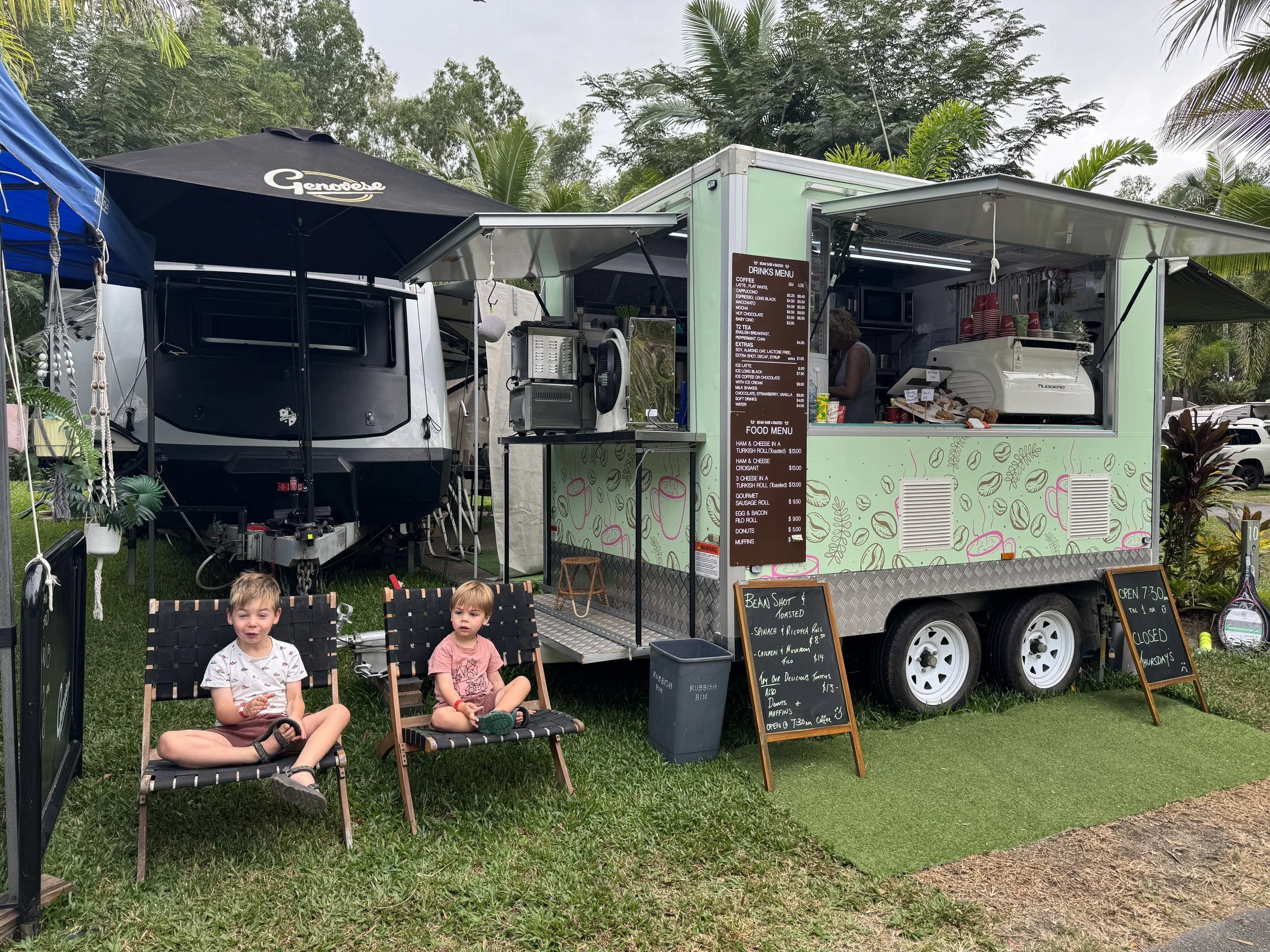 Op onze eerste dag Port Douglas besluiten we nog eens een ‘rustdagje’ te houden waardoor onze plannen niet veel verder reiken dan een koffietje te drinken in het centrum en even langs een tour operator te lopen om te informeren voor een uitstap naar the great barrier reef. Zo gezegd, zo gedaan. Tijdens onze wandeling lopen we langs een heel leuk boekenwinkeltje waar we voor de kids enkele leesboekjes kopen. Niet te veel want alles wat we extra kopen moet ook in onze rugzakken passen, en die zitten al behoorlijk vol (om niet te zeggen, propvol). In de namiddag blijven we op de camping, die weer helemaal op maat van de kids is (zwembad, glijbanen, go-karts, speeltuin,… Alles erop en eraan!).