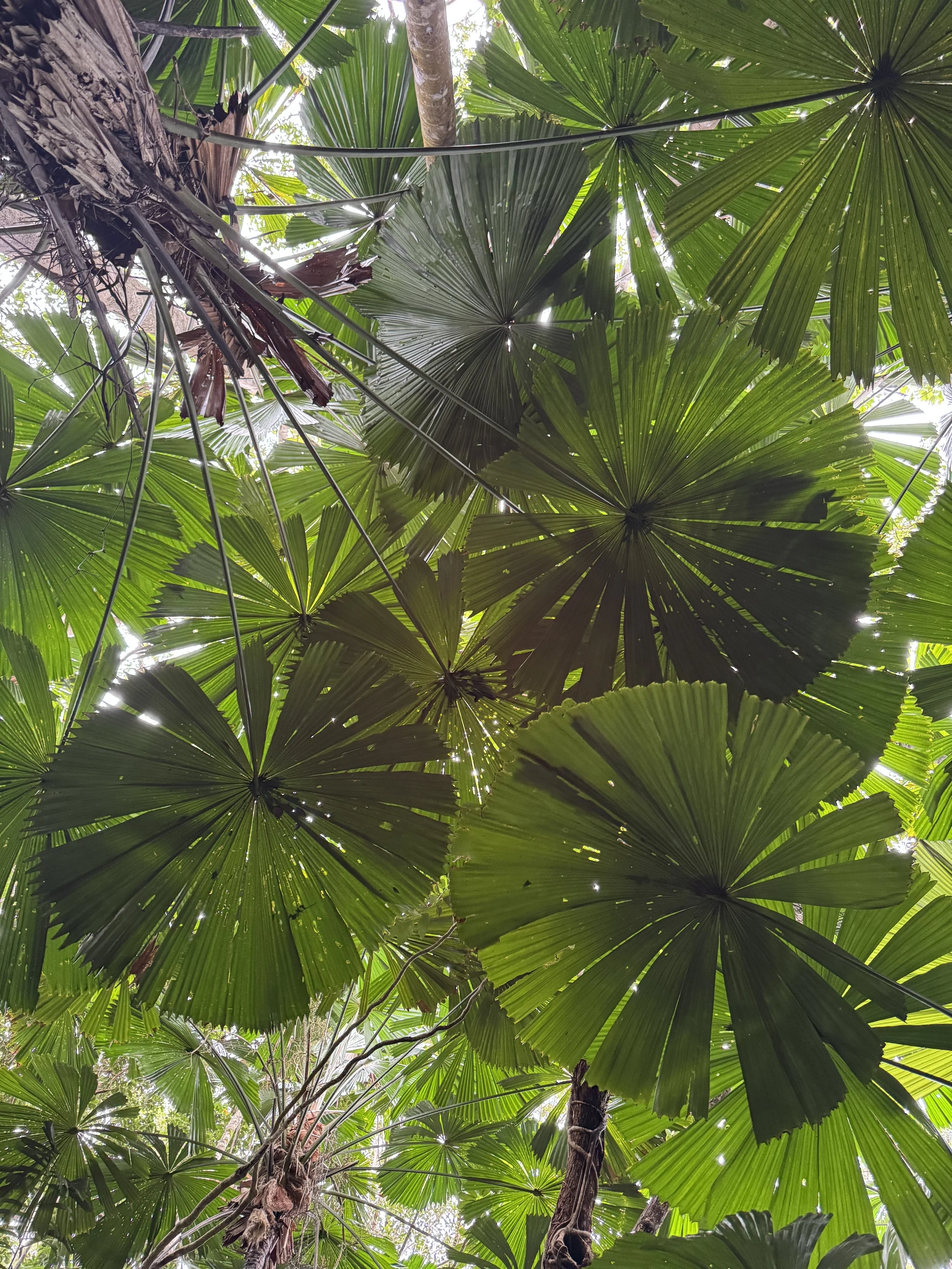 Na enkele minuten zien we de eerste exemplaren, volgens de gids zijn de krokodillen gewend aan zijn stem en daarom ook rustig. Kan hij wel zeggen natuurlijk! Het is een magisch landschap en rustgevend boottochtje. Na een uurtje zijn we terug en klaar om onze rit verder te zetten. Aan de andere kant van rivier zijn we echt in het Daintree Rainforest, vanaf hier wordt het allemaal wat ruiger, met 1 rijbaan en kans op wildlife (lees: Cassowary’s) onderweg.