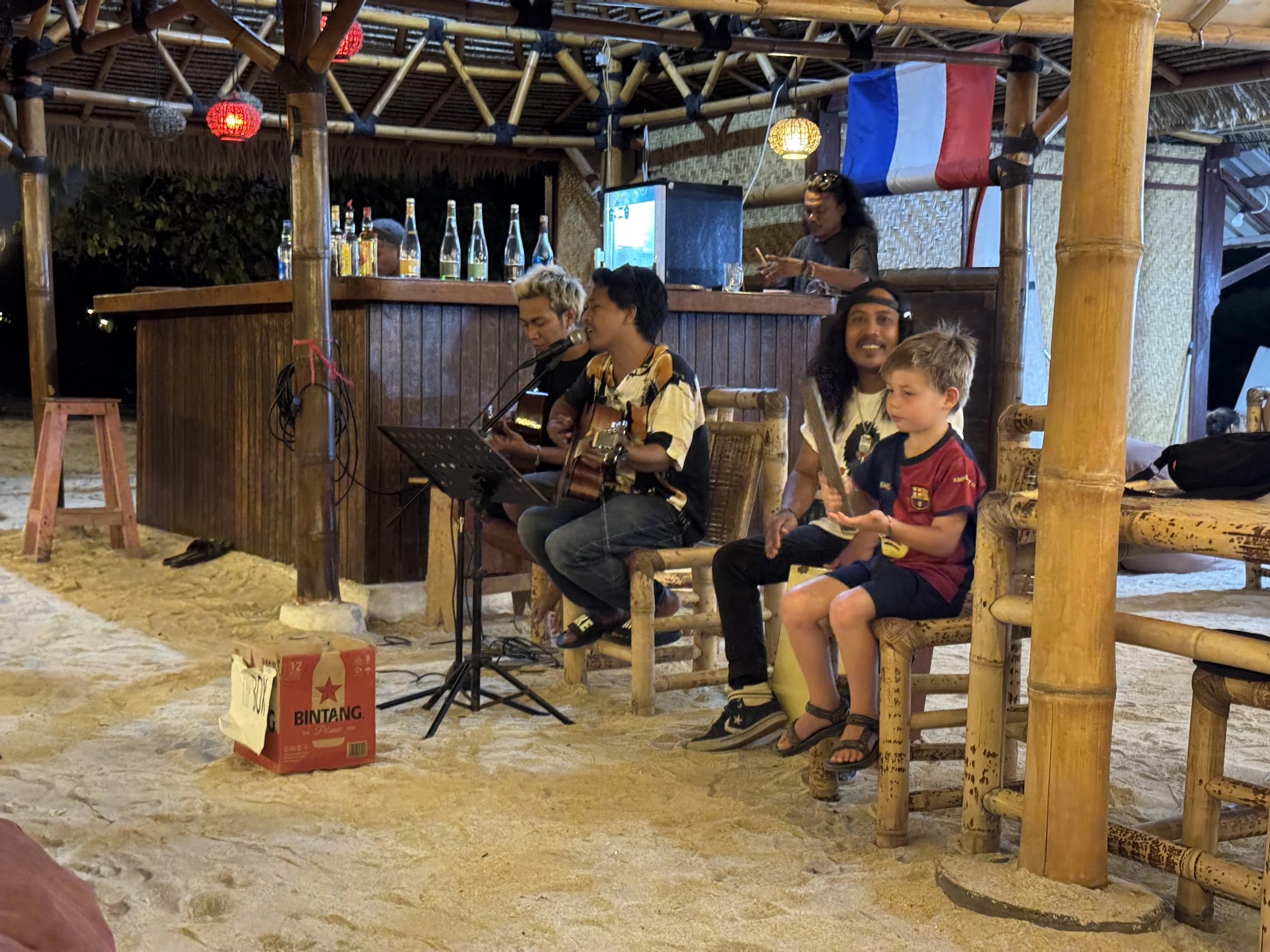 De dagen vliegen voorbij en eigenlijk willen we helemaal niet vertrekken. Onze laatste avond mogen Leon en Staf meedoen met een live muziek band, de perfecte afsluiter voor ons Gili avontuur. We’ll come back!