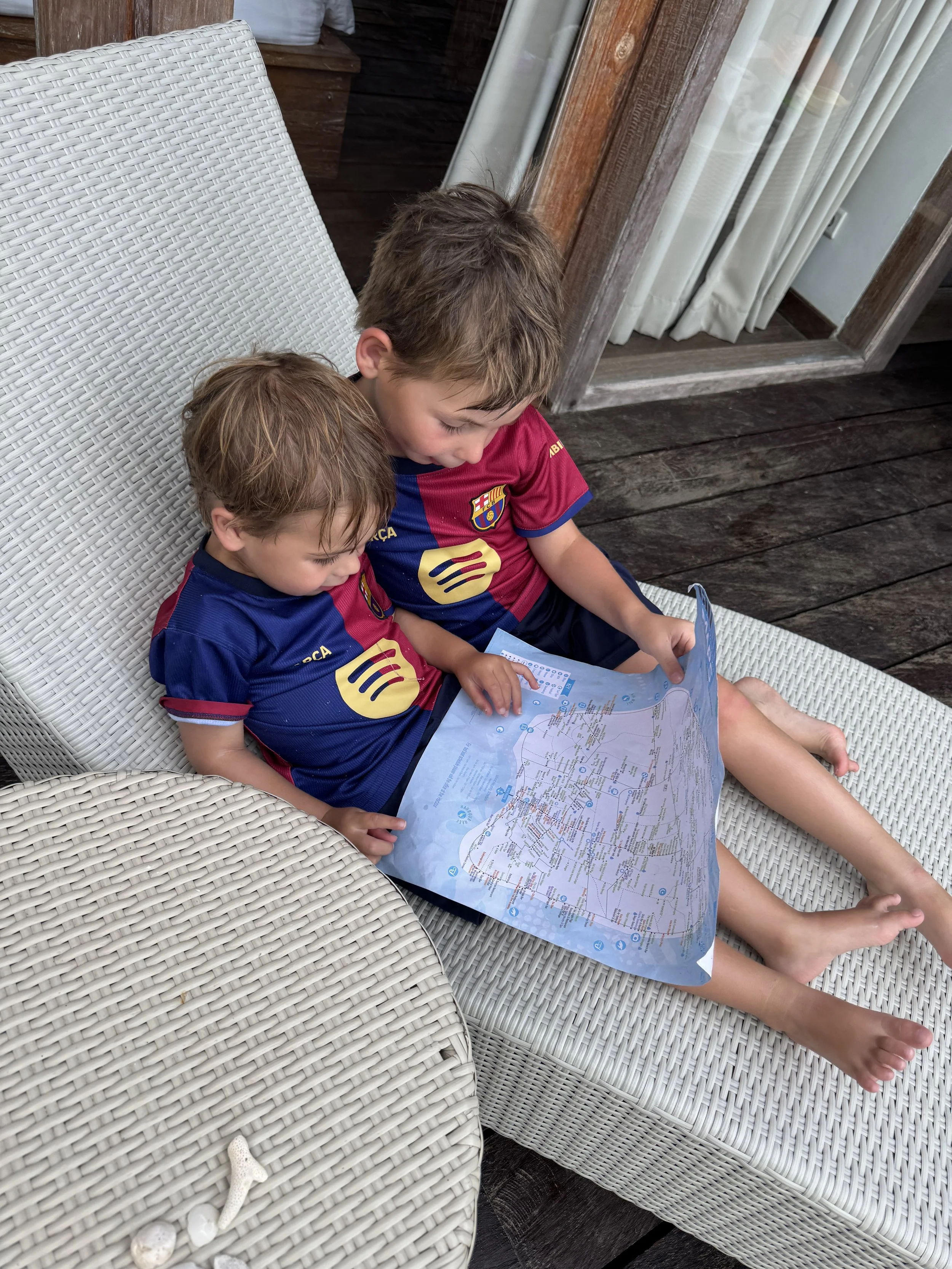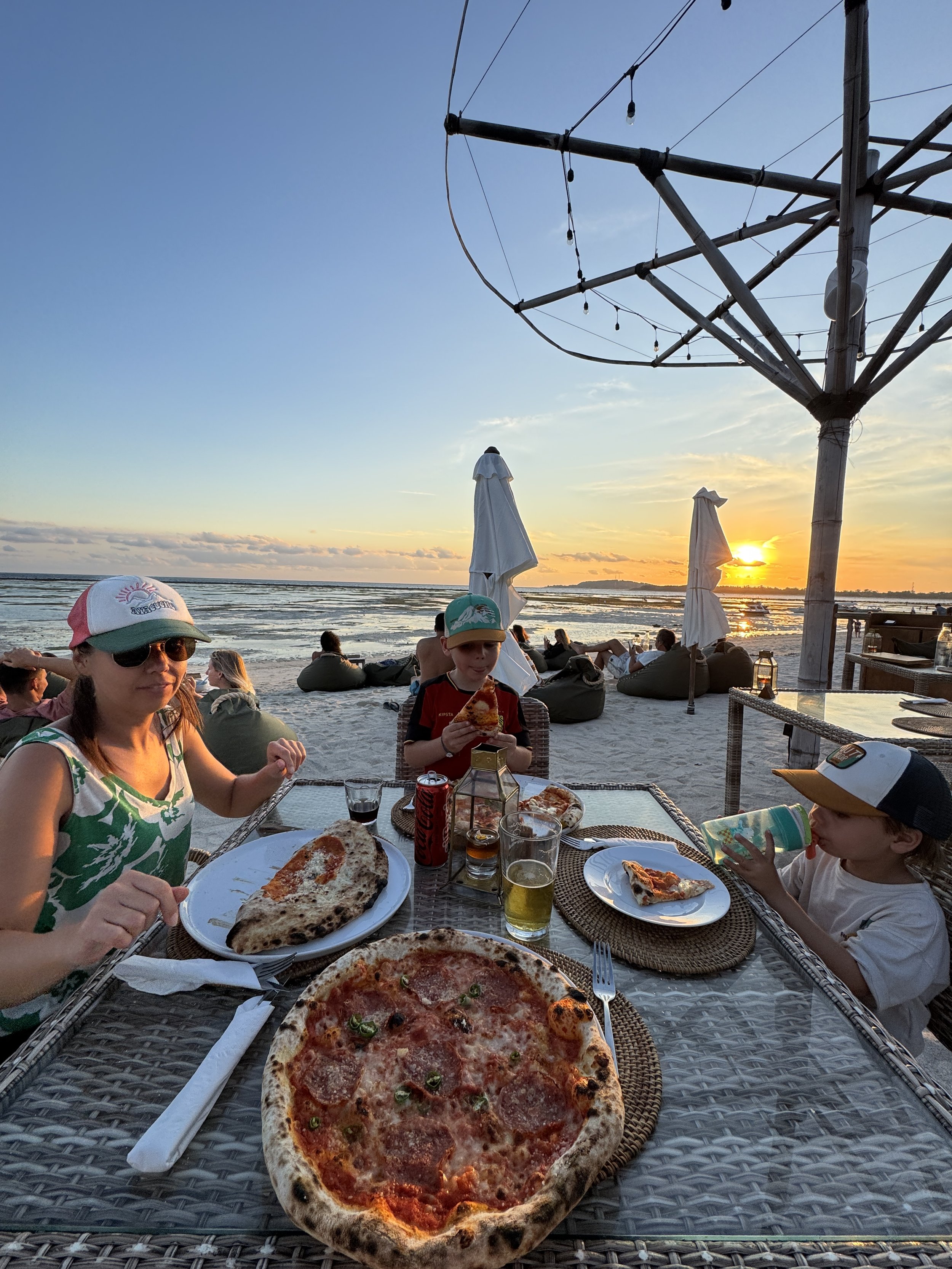 We besluiten om fietsen te huren voor de komende dagen, 5 euro per dag - voor 3 fietsen! Ideaal transportmiddel om het eiland te verkennen! Onze dagen zijn gevuld met rondfietsen, terrasjes doen, iets eten en naar de zonsondergang gaan kijken. Tom gaat ook een keertje duiken en ondertussen gaan Kim en de kids naar een barretje met grote speeltuin. De mensen hier zijn supervriendelijk en besteden veel aandacht aan de kinderen - zalig!